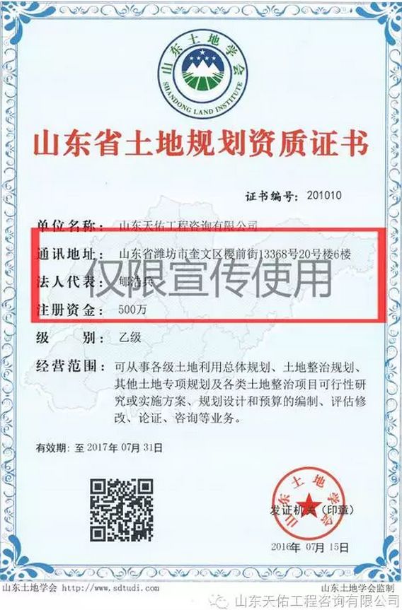 山东土地学会2016年度土地资质年检换证会议于7月22日在淄博举行,参加本次会议的有土地规划资质单位、土地开发整治资质单位、土地登记代理资质单位、土地监理资质单位,公司资质管理专业人员参加了本次会议。