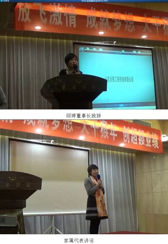 大会首先由邱婷董事长致辞,随后家属代表上台讲话。