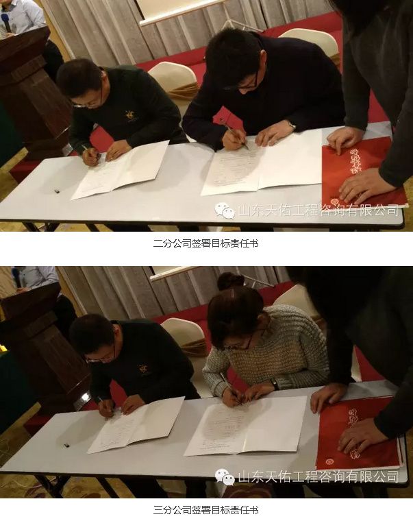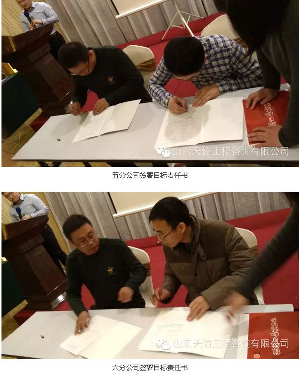 各分公司经理及负责人上台陈述2016年业绩目标,各分公司负责人纷纷表示将以饱满的热情,鼓足干劲超额完成年度目标,并现场签署了年度目标责任书。