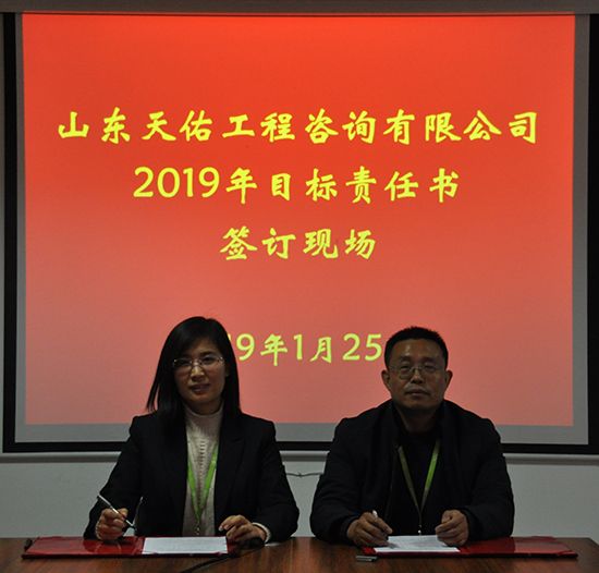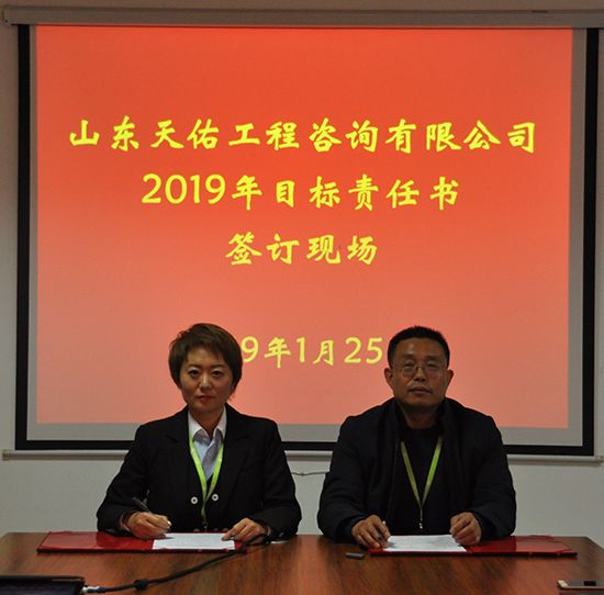 最后,郇浩兵总经理与各部门负责人签署了目标责任书,各部门通过公开承诺,强化责任,明确目标方向,增强工作紧迫感,按照公司总体工作布局,砥砺奋进,撸起袖子加油干,确保2019年各项任务目标顺利完成。
