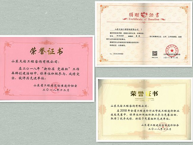 在潍坊市工程建设标准定额管理办公室举行的2018年度先进评选中,公司分别获“2018年度工程造价咨询先进单位”、“2018年度潍坊市全过程工程咨询服务先进单位”称号。