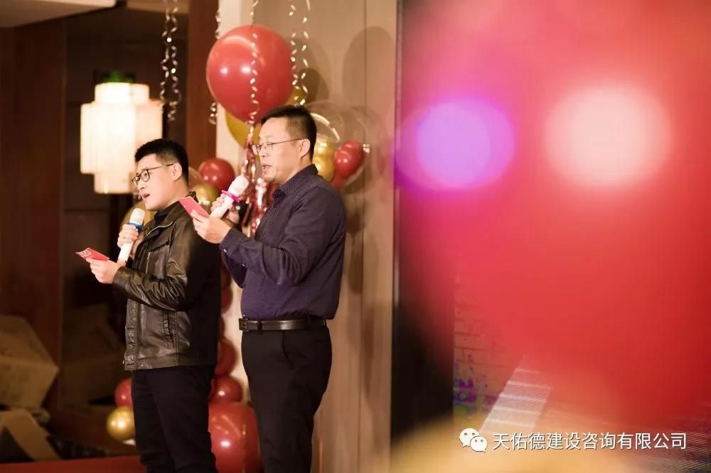 1月18日下午,由天佑德建设咨询有限公司工会承办的“天佑十二载 筑梦创未来”联欢会在东方大酒店隆重举行。公司全体员工及家属齐聚一堂,辞旧迎新,共享盛宴。